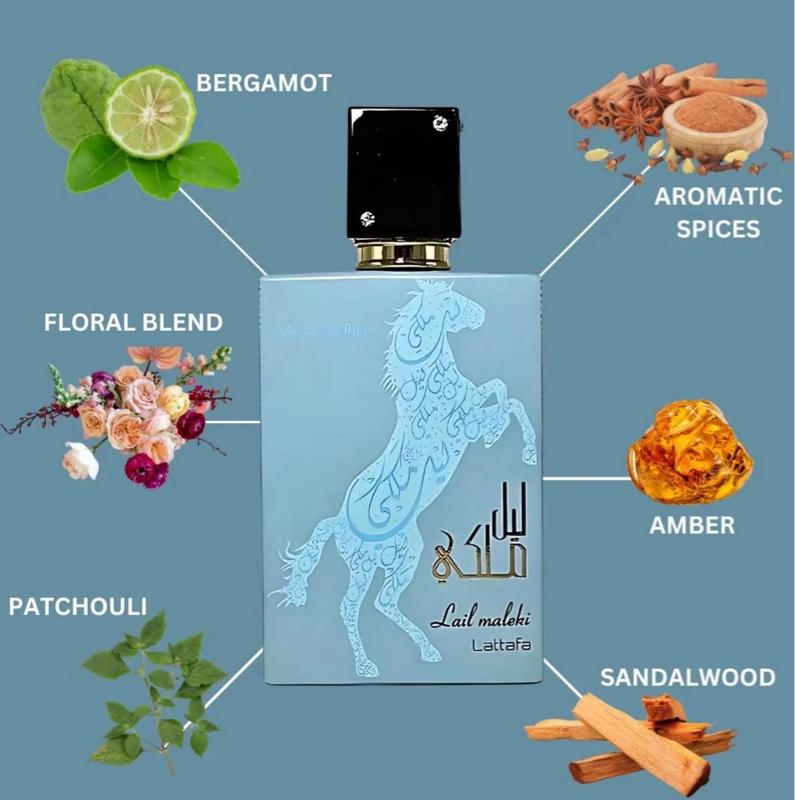 Lattafa Lail Maleki Moroccan Blue Eau De Parfum 100ml Unisex Fresh Citrus Floral Fragrance